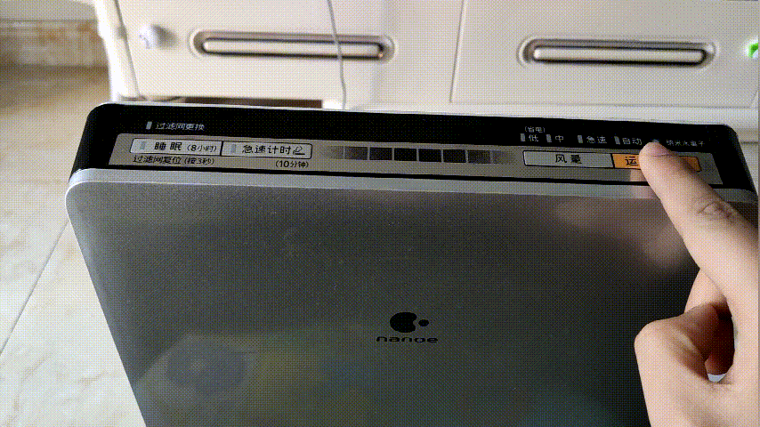 操作界面只有开关、风量、计时、睡眠等四个按键,简单明了,易于操作。但按键触感有些生硬,传感力度不够明显。