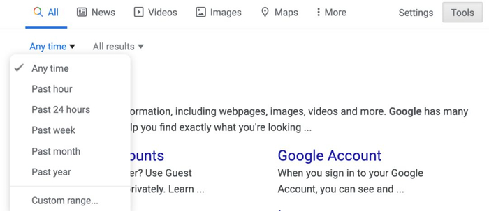 对于大多数问题,你需要的是近几年的资源。因此当在谷歌上搜索一个错误的解决方案时,你可以过滤掉旧的结果,比如在搜索条件里设置时间限制,或者在查看结果片段时通过大体扫一遍来肉眼过滤等。