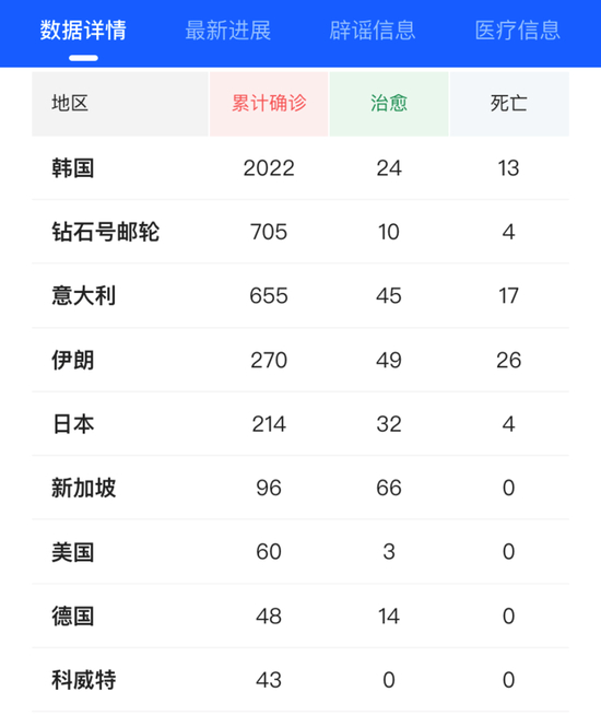 再看国际形势,目前日本确诊病例已达 912 例,韩国确诊病例达 2022 例,并且韩国政府已将疫情危机预警级别上调至最高的“严重”级别。在欧洲地区,意大利确诊病例数字在数天内就从 3 例突破至 655 例。另外,作为多个国际会议举办地的美国,累计确诊病例也达到了 60 例。
