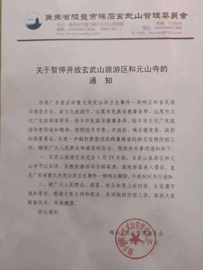 玄武山暂停开放通知 / 图源自网络