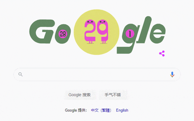 昨天是四年一度的2月29日。谷歌也在这天也在首页更换了闰年彩蛋。