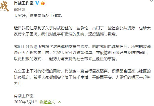 作为艺人本身,这些逻辑似乎离肖战太远了。每一个明星的前台人设里,都有太多和他自己无关的意志。只是,肖战超话的名人动态显示,肖战于昨晚十一点左右上线微博,而那时,网友对于他和他的粉丝“声讨”的战火正盛。