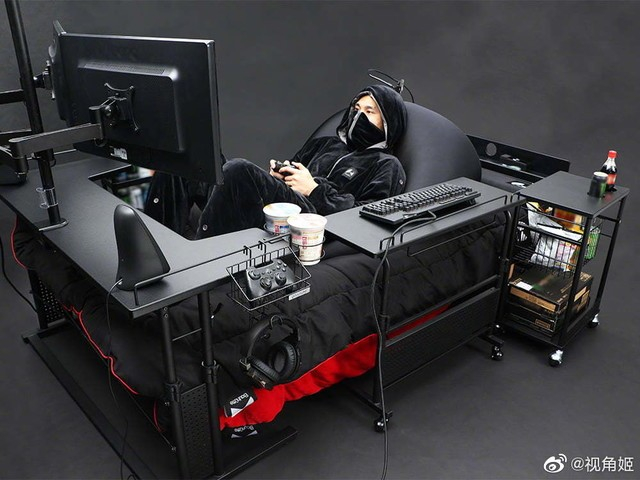 原标题:这么玩不得胖死?日本发明肥宅游戏床