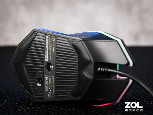 鼠标后盖覆盖了黑色哑光涂层,中部拥有多个圆点组成的达尔优logo。涂层触感细腻温润,手心出汗后也不会感觉粘手或滑腻。