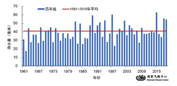 ▲全国冬季降水量历年变化(1961/1962-2019/2020年)。图/国家气候中心