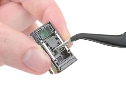 iFixit介绍,Galaxy S20 Ultra的传感器,1亿800万像素这颗是由9.5mm x 7.3mm的尺寸来包装的,将更多的像素包装在小空间内,在低照度环境下会发生很多噪点。