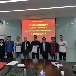 近日,国内领先个人云存储产品百度网盘正式获得由中国质量认证体系(CQC)颁发的关于ISO\IEC27001(信息安全管理体系)和ISO\IEC27018(个人可识别信息信息安全管理体系)两项信息安全认证证书,标志着百度网盘在个人信息处理的准确性、透明化和安全性等方面已经达到国际顶尖水平。