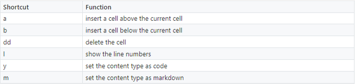 当单元左侧的垂直条显示其为命令状态(蓝色)时,就可以使用下面这些快捷键了。