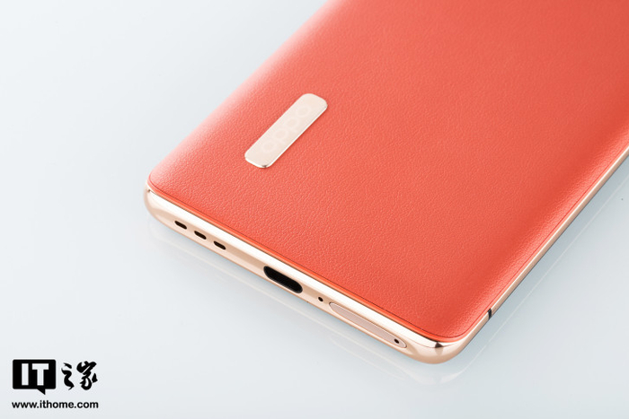 IT之家拿到的Find X2 Pro是橙色的素皮版本,背面采用了皮革材质,皮质的运用恰到好处,首先是在观感上,相较于玻璃,皮质有着更“高贵”的属性;从实用性角度来看,皮质机身更防滑、不沾指纹和汗渍,还避免了掉在地上后盖摔裂的风险。