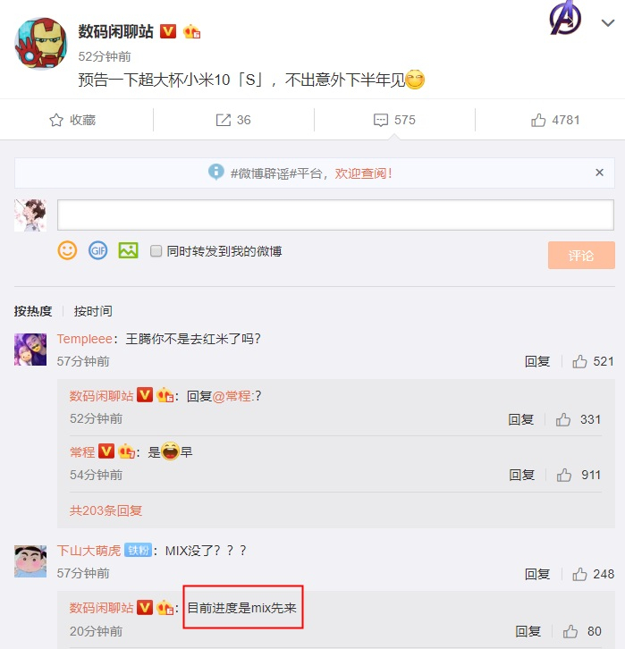 数码博主@数码闲聊站 爆料称,“超大杯”小米10S不出意外将于下半年发布。同时,按照目前的进度来看,小米10s将在MIX系列新品之后推出。