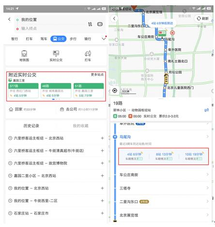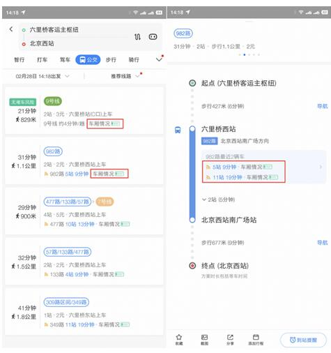 (附近实时公交及搜索公交线路可查看客流量情况)