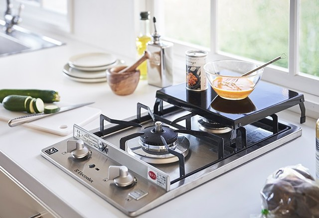 山崎实业公司日前推出了可安装在燃气灶上,作为工作台和收纳空间使用的1口用盖“折叠燃气灶盖塔”和2 ~ 3口用“折叠燃气灶盖塔宽体”。价格依次为2,200日元、3,300日元(含税)。可以在乐天市场和亚马逊上购买。