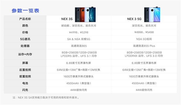 相比于NEX 3 5G同配置的价格分别降低了多达700元、900元。