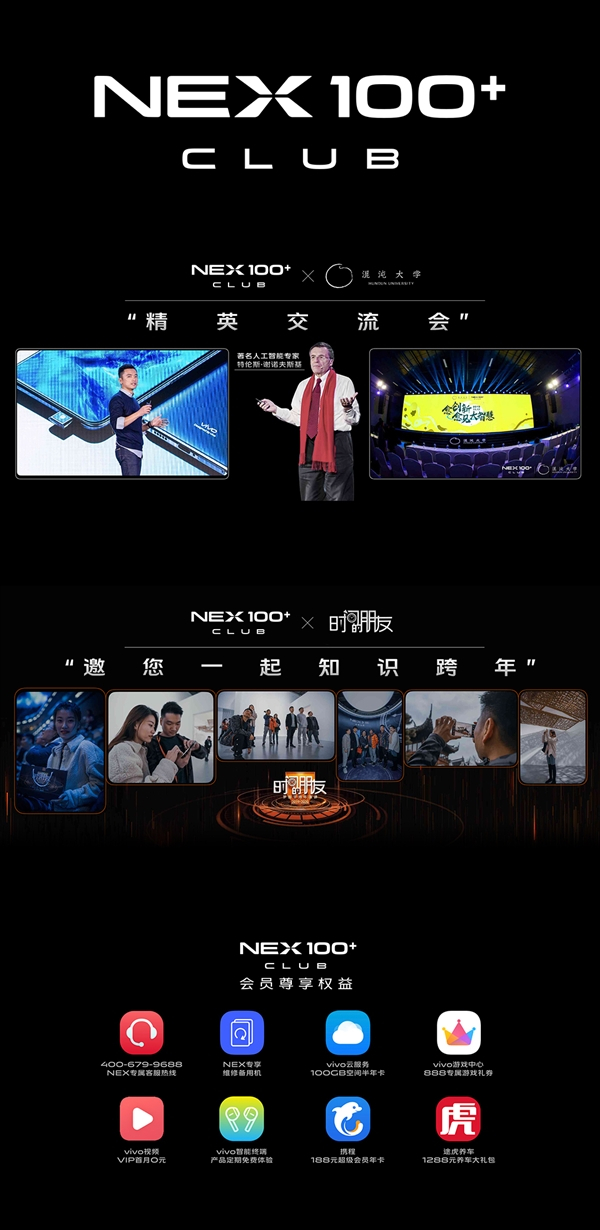 同时,vivo继续为NEX 100+ Club定制专项的精英会员活动,包括沙龙讲座、专属体验等等。