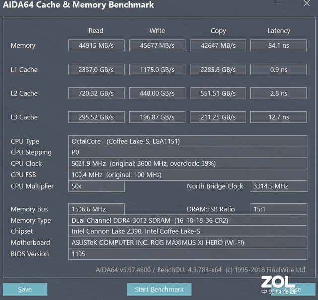 首先我们来使用AIDA64进行测试,AIDA64内存带宽测试项目主要包括内存的读取、写入、拷贝和延迟参数,并提供全方位的硬件信息的检测功能,方便用户知晓平台硬件配置的准确信息。