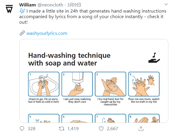 原标题:输入歌曲名称后 新工具可自动生成歌词并逐行放置在洗手信息图上 来源:cnBeta.COM