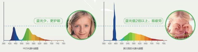 HLD固态光源蓝光值明显更少更护眼