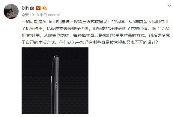 一加8系列将保留三段式按键?刘作虎解释个中原因