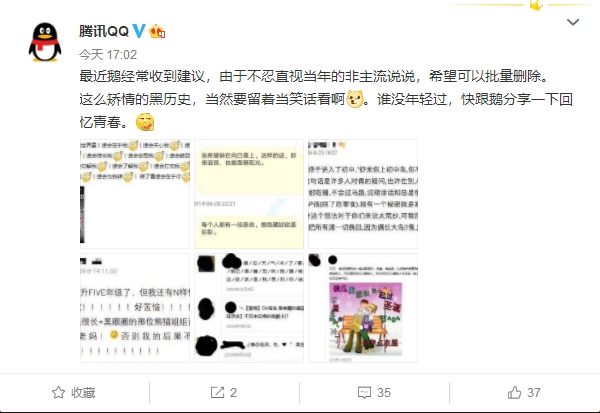 今天下午,腾讯QQ就在微博透露,最近自己经常收到建议:“由于不忍直视当年的非主流说说,希望可以批量删除。”