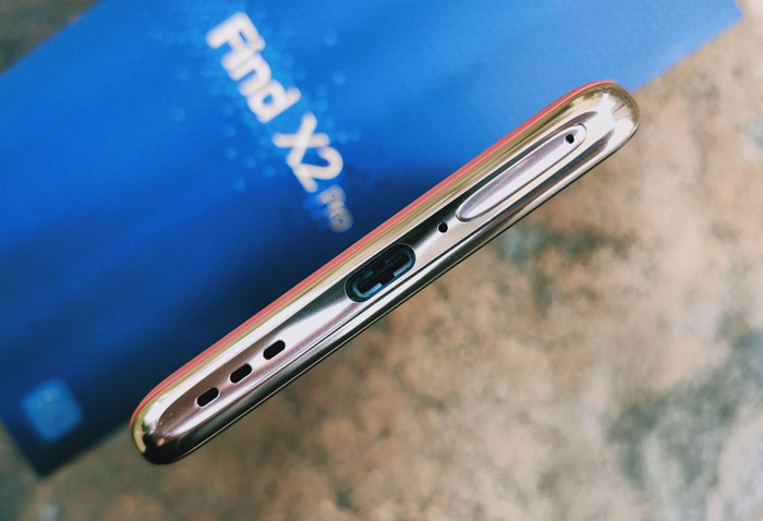 OPPO Find X2 Pro的数据接口依旧采用Type-C标准,支持高达65W的SuperVOOC 2.0超级闪充,卡槽放置在机身底部,形状设计十分别致,因此可以隐藏在同样是家族式设计的“月牙弯”凹槽当中,使得机身左右两边的中框部分更光滑过渡,具有一体感。