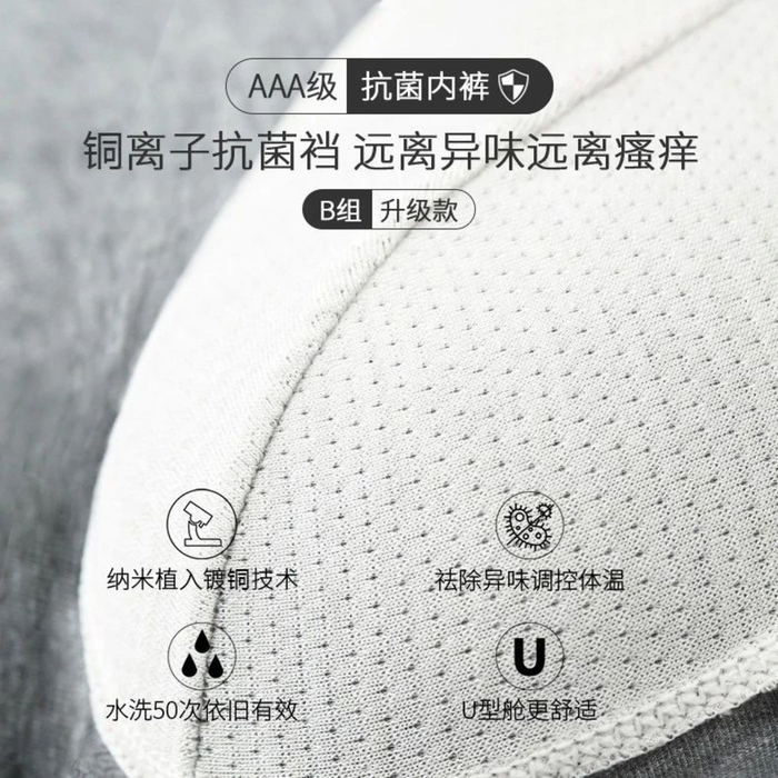 2、裆部采用铜改性聚酯纤维,AAA级铜离子军工抗菌,做真男人!