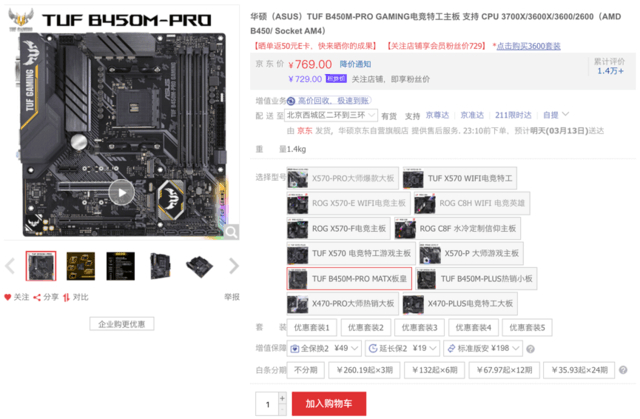 TUF B450M-PRO GAMING主板——B450M板皇到手仅729元