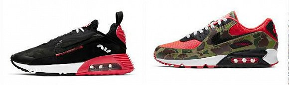 其中一款是元年Air Max 90 Duck Camo配色的“反转”设计,而另一款Air Max 2090采用半透明多层式鞋面,Duck Camo迷彩图案在其间若隐若现。