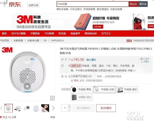 随着工业化的发展,我国正处在发展与环境的矛盾之中,空气污染逐渐变成了人们关注的话题,私家车作为第二个私人空间,本就空间狭小,千万别让爱车成了你健康的杀手,下面给大家推荐3M PN38916车载空气净化器。PN38916净化器外型小巧精致,有黑、白两种外观颜色可选,有效清除车内的甲醛、甲苯和细微颗粒。现京东促销仅售745元,有意向的朋友进入京东点击进入京东查看购买。 具体价格以实际为准,本资讯为自由采集,产品详情和售后服务请联系商家。
