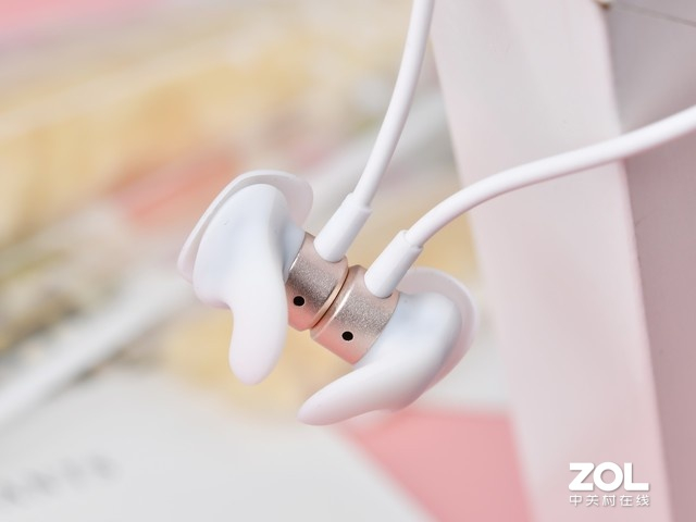 露娜耳机一入手,笔者第一感觉就是轻盈。耳机整体重量非常轻,只有XXg,挂载脖子上没有任何不适感。耳机设计完全对称,纯白色的机身和淡金色的单元外壳搭配起来,有一种纯洁、清新的感觉。