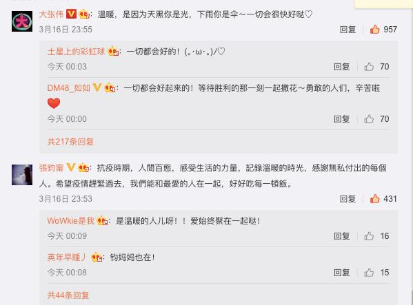 纪录片播出以后,观众纷纷表示“泪目”“看哭好几次”,连艺人们都被感动,当场转发评论~