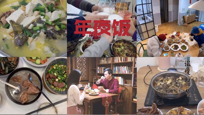 看到武汉医护人员家属多美妈妈忧心忡忡准备年夜饭的作品后,导演组又针对性地约稿了十位拍摄年夜饭视频的网友:有人隆重地戴上红帽穿上新衣拍全家福;有人虽然焦虑也还是陪家人去超市采购;有人在家专注地备菜和烹饪;有人和分隔两地的家人搞了一场云吃饭……这些画面以九宫格画中画的形式呈现,展现了美食对疫情阴霾中人们心灵的抚慰。