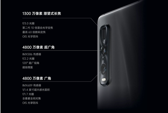 作为OPPO主打高端、探索极致体验的产品线,Find系列不惜成本地堆料方式早已司空见惯,这次带来的“Pro”型号,更是完全摆出了一副舍我其谁的架势,在关乎成像画质的CMOS选择上不惜成本:与索尼联合定制的IMX689传感器主摄、将IMX586旗舰传感器作为超广角镜头、最高60倍变焦且具备OIS光学防抖的潜望式镜头。三枚焦段不同的镜头组合,可针对微距、超广角、广角、长焦等拍摄需求做到全场景覆盖。