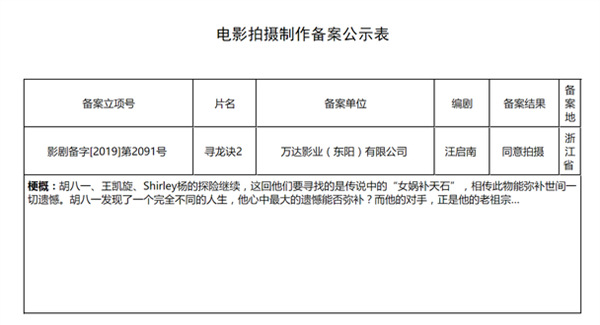 3月20日消息,据国家电影局备案公示,由汪启南编剧的电影《寻龙诀2》立项,获准拍摄,备案单位为万达影业(东阳)有限公司。