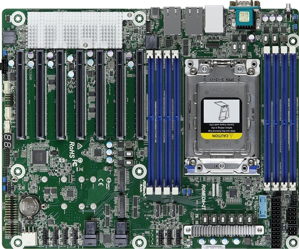 华擎旗下的服务器业务品牌ASRockRack就利用AMD二代霄龙的PCIe 4.0强大支持,打造了一款非常妖的板子“ROMED8-2T”,ATX板型空间内居然提供了多达七条PCIe 4.0 x16扩展插槽,一字排开非常壮观。