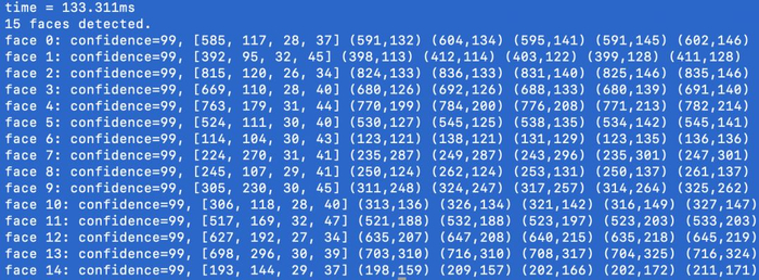 虽然看似操作非常复杂,但实际上主要就是编译 OpenCV,其它模块都可以直接在项目中完成编译。最后,就可以愉快地使用这个极速人脸检测模型了。