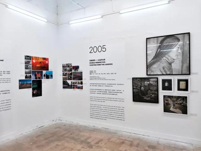 在浏览完陈荣辉的《空城计》、陈卓的《荒蛮故事》、钱海峰的《绿皮火车》、刘珂和晃晃的《镜子》和戴建勇的《朱凤娟》这些熟悉的展览后,重新来到“旧粮仓”展场正门——今年在其右侧的空间里呈现了一个“特别”的展览,它是一个对连州国际摄影年展的回顾与总结,以文本、海报和部分展览作品的形式展现了其自2005成立至今的成长脉络,一步一个脚印,逐渐成长为中国颇具影响力的摄影盛会。