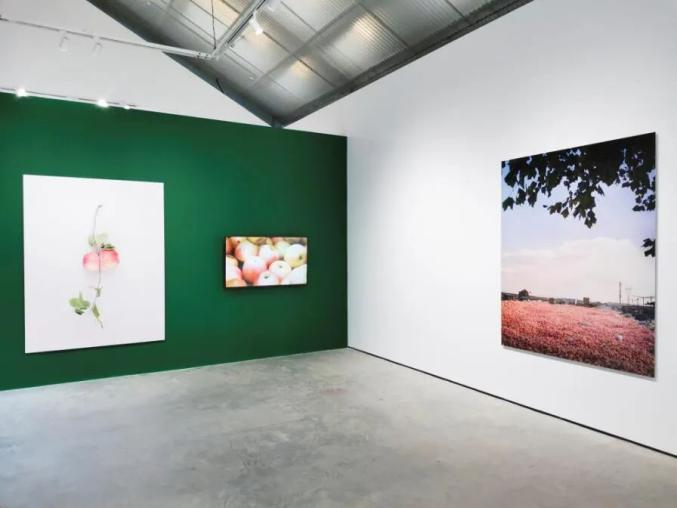 《鸟头:欢迎再次来到鸟头的世界》之后是《张晓:苹果》。这个展览由照片、视频和一颗挂满“苹果”的果树构成。张晓早期的作品很多都是来源于地域线索的宏大叙事,他以“游记”的摄影风格,记录日常场景中的人和事。影像中的超现实感捕捉了现代中国社会因急剧发展所导致的荒诞局面——比如《他们》《海岸线》,都是以时代背景作为切入点去讲述整个中国的社会现实和人的个体状态之间的微妙关系。之后,张晓的作品发生变化,他将自己的创作重心回归到自己身上,以“艺术介入”方式来探讨自己与故乡之间的种种关系。张晓的家乡是山东烟台,那里盛产苹果——“1871年,美国传教士约翰·倪维思夫妇将从美国、欧洲搜集的西洋苹果苗木带入烟台,并在毓璜顶东南山麓建园栽植,取名‘广兴果园’,从此开创了中国苹果栽培的新纪元。”苹果,成为烟台地区的符号化存在——家家户户都种植苹果,大部分人的生活也都是围绕着苹果进行的。