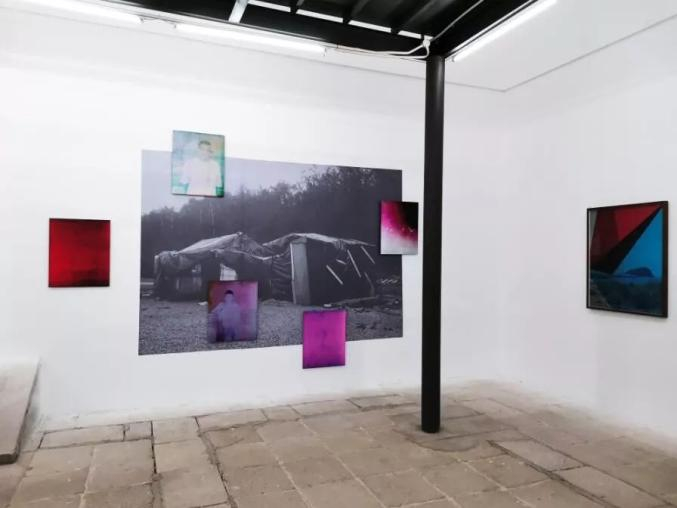第二排圆柱体建筑空间中,王居延的《无名地景》是其第一个展览,展出的作品来自于他的“2084计划——奶牛、碉堡”和“无名地景和受难地景与含混的第二种状态”这两个系列。其中“无名地景和受难地景与含混的第二种状态”是在北威尔士的Dolbadarn Casle附近取景,它的名字出自英国作家威廉·燕卜荪(William Empson)的《含混的七种类型》——文学上所谓的“文本细读”的理论就建构于这本书,七种含混的概念被燕卜荪建构并用来分析解构复杂的文本。王居延从“文本的含混”出发,并放大了这种冲突感——“阅读图像始终有一个冲突的状态,一方面图像可以包括其背后的历史命题,可我们有经常误读所指引出的文本。”“2084计划——奶牛、碉堡”则“继续了王居延作品中一贯的反乌托邦语境,如题目所指,包括了一张有奶牛的图像,一张有碉堡的图像以及没有指向性的废墟、海景和山景。系列并不展现线性叙事,取而代之的王居延作品中一如既往的受难氛围和纪念碑式的庞大且富有隐喻的地景。”