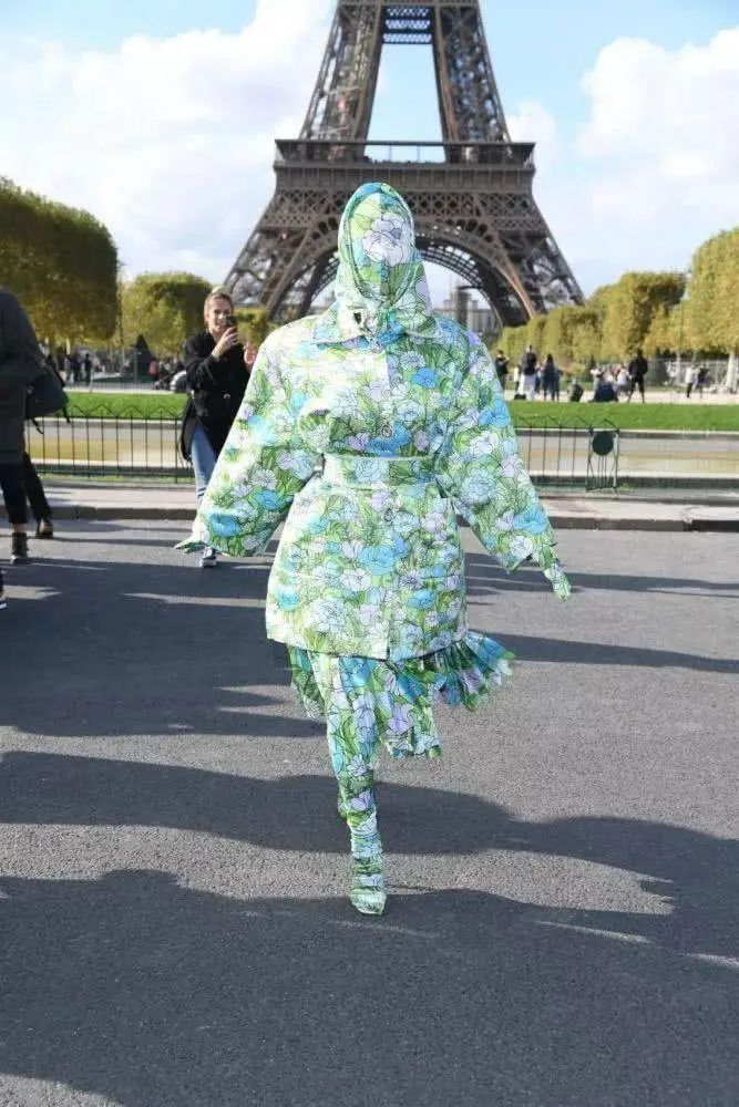 乍一看不知道是哪个花花蝴蝶以莅临检查工作的架势迎面走了过来,其实是因为法国之前规定不允许女性遮面,所以卡老师决定在一次法国的活动中以遮面造型登场,既宣扬了女权,又slay了全场。
