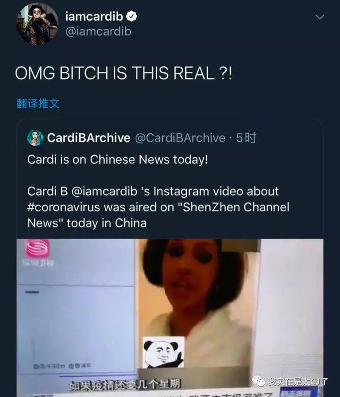 没错,还能有谁?当然是我们流浪在外的小品及单口相声表演艺术家、美国吹萨克斯第一人、Instagram网络红人、(兼职)饶舌天后——Cardi B!