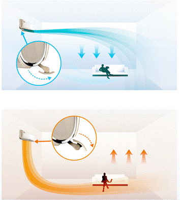 “别着急嘛”,我缓缓说道:“格力冷净风健康款空调方面还有一个人性化设计我没说呢!这款空调会及时提醒何时更换滤网,这就避免了二次污染。至于你关心的送风效果,你别看图片里的空调精致小巧,它可是采用了格力自主研发的衡温立体送风技术,能对吹出的气流根据不同模式进行导向:制热时,它的热风向下吹出,实现‘地毯式送暖’,温暖自下而上;到了夏天制冷时,它又会让冷风向上吹出,达到‘沐浴式制冷’的效果,实现温场均衡。”