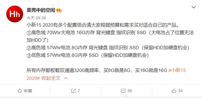 原标题:联想小新15 2020 采用板载内存,HDD和大电池二选一