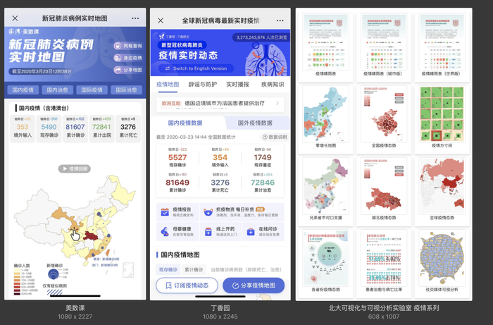 眼看着疫情从最初的一张静态长图到各家媒体标配的动态地图,并随疫情发展不断完善。如丁香园除地图外,后期还开辟了辟谣与防护、疾病知识、最新信息实时播报栏口,便于读者一站式查询,澎湃新闻·美数课则在国内确诊数据放缓时及时上线「治愈地图」,国外疫情加重时,呈现细分的国际疫情数据。地图成为人们了解疫情动态的第一窗口。
