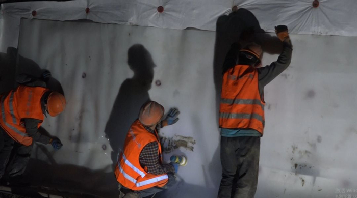 冯富成:“现在工人正在做的是二衬混凝土浇筑施工。分层浇筑,上下三个窗口,如何保证浇满,有个装置,顶部浇筑满了会自动报警,起到检验作用。浇筑混凝土完成2小时内,对拱顶进行注浆,确保整体密实。”