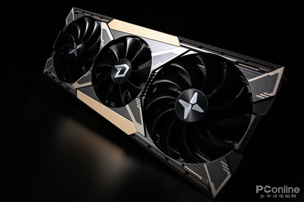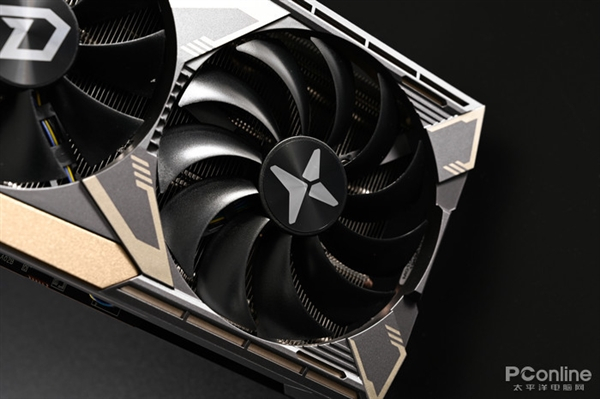 显卡采用了合金背板,切割工艺将背板分成了几个部分,中间是X的LOGO,边角辅以金色点缀。可以说酷炫+质感兼具。