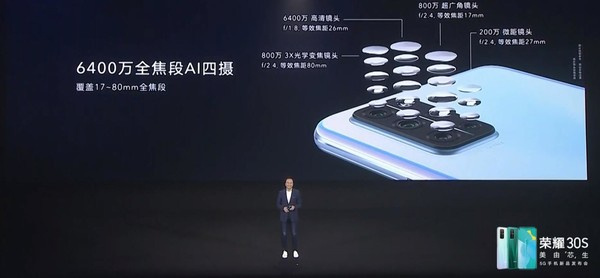 原标题:荣耀30S拍照配置公布 6400万像素四摄还有20倍变焦