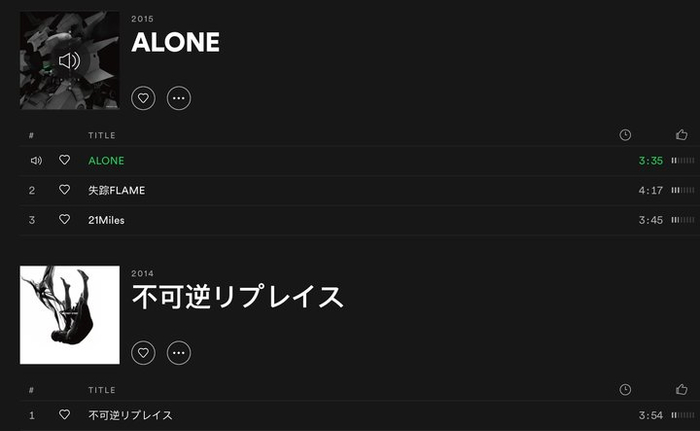 ▲ 歌手:My First Story | 专辑:《ALONE》+《不可逆リプレ亻ス》| 连接模式:AAC | 音源:Spotify 音质极高