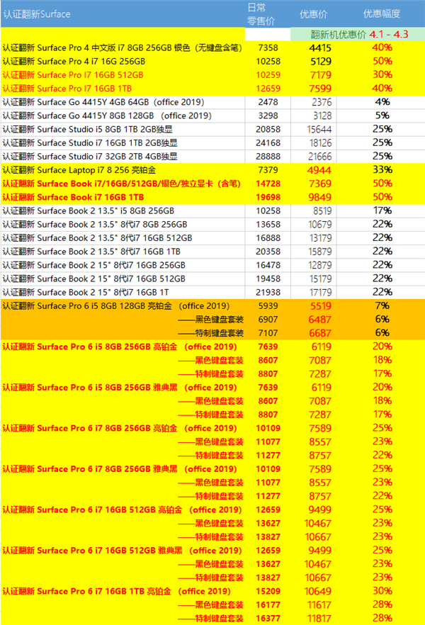 4月1-3日,也就是今晚零点开始,微软官方商城(点击前往)启动新一轮Surface系列官方翻新机优惠促销活动,最高优惠幅度达到50%,而且大部分都在七八折左右,力度更胜从前,不容错过。