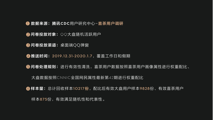 日前,喜茶携手腾讯CDC,借力腾讯CDC丰富、专业的用户研究经验,对喜茶用户进行一次年度调研。《2019年喜茶用户洞察报告》调研从喜茶产品、喜茶门店和喜茶品牌出发,围绕这三个用户感知的主要触点,对2019年喜茶用户的行为和态度进行挖掘和盘点。