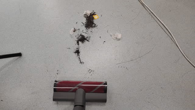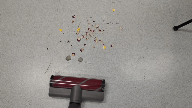IT之家又通过枯萎的花瓣和沙土对H6进行了清洁力和吸力的测试,这里使用的是地刷吸头。